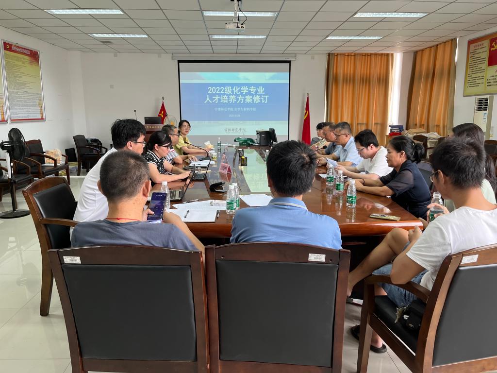 2022年8月28日,公司化学系在求实楼CD401召开化学专业建设研讨会暨人才培养方案修订会。闽南师范大学化学化工与环境学院经理张茂升教授、福建师范大学化学与化工学院化学专业负责人郑柳萍教授两位专家通过线上出席会议,宁德市高级中学董事长郭志东、宁德市教师进修学院化学教研室主任陈惠明、东侨中学化学组组长张如禄、蕉城中学化学学科负责人傅明桂四位专家莅临会议现场,公司副经理陈峰、黄晓辉出席会议,化学系全体教师参加了本次会议,会议由化学系主任王颖主持。