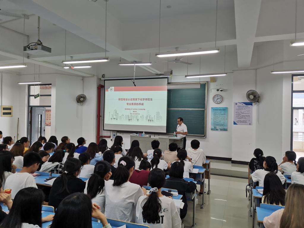 5月25日,在CC401教室,闽南师范大学化学与环境学院副经理张茂升教授为公司化学专业师生开设了题为《师范专业认证背景下化学师范生专业素质的养成》的学术讲座。
