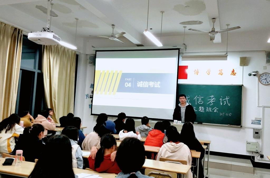 主题班会的开展,旨在让同学们进一步认识保持学院良好学风考风和为人诚信的重要性,同时也希望同学们提前温书复习,诚信迎考,争创佳绩。(王松 供稿)
