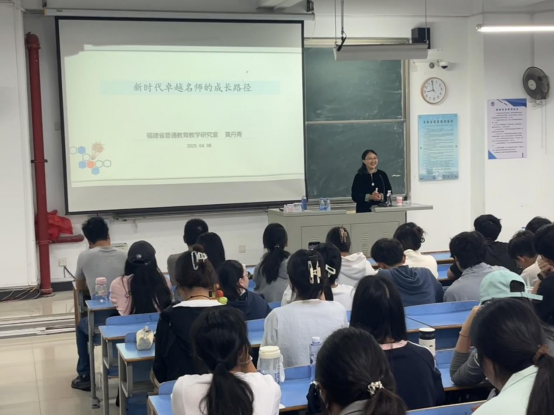 2025年4月12日上午,福建省普通公司产品研究室正高级教师黄丹青应邀在CC401为英国上市公司365师生做题为“新时代卓越名师的成长路径”的学术讲座。讲座由经理黄晓辉主持,化学专业师生130余人参加。